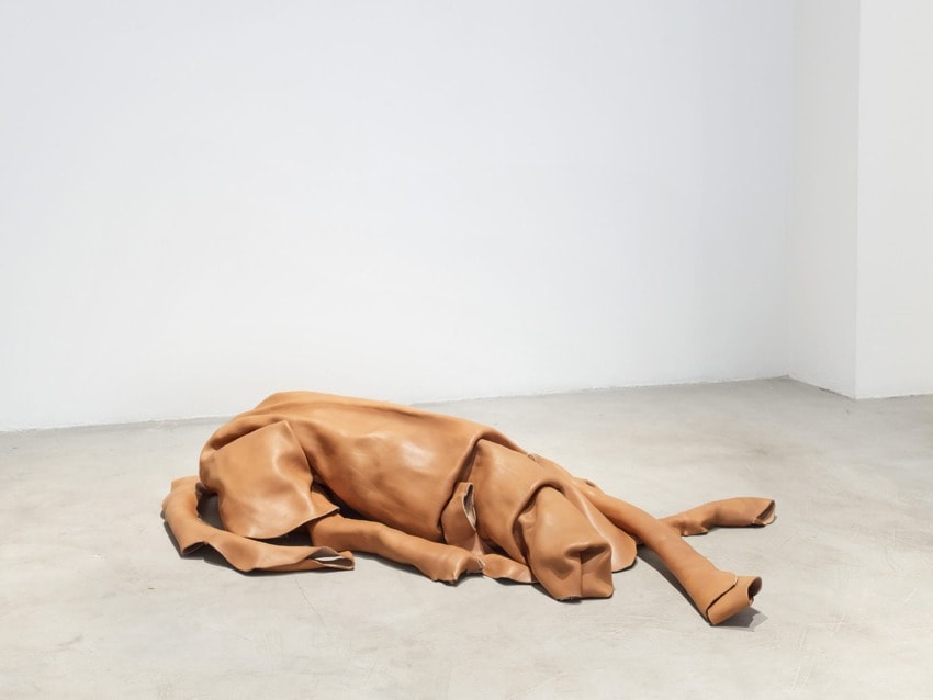 Dépendance gallery, of Brussels, is presenting two works by Wächtler within their Nova sector booth. One is a charcoal-on-paper recalling the bottom part of a whale whose front half is already submerged, while the other is an abstracted sculpture of a dog, made of tannish leather. Distinct from each other in form and sensibility, there is an underlying poetry to both. The Hanover-born, Brussels-based Wächtler has had solo shows at the Museum of Contemporary Art, Antwerp and Chisenhale gallery in London, among other venues.