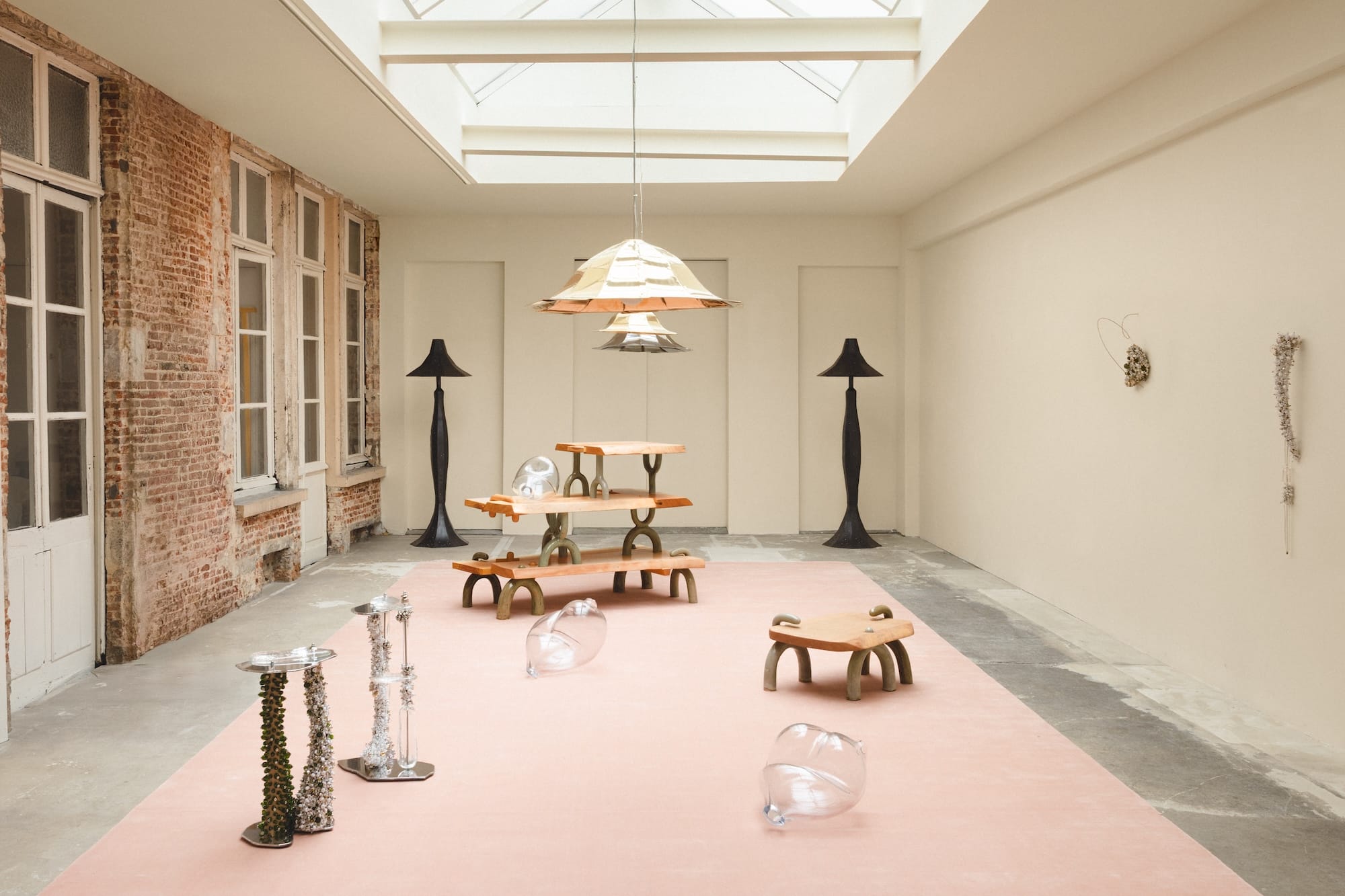 Curated by gallery founders Henri Delbarre and Geraldine Jackman, this unique group show convenes eight female designers—Anne Büscher, Madeline Coven, Marijke De Cock, Kimy Gringoire, Marte Mei, Emily Thurman, and Hannah Kuhlmann with Lisa Scherebnenko—whose work bears the imprint of jewelry. On view are Kuhlmann and Scherebnenko’s floor lamps and shelving, Mei’s ceramic and wooden modular units created with Studio van der Zee, De Cock’s glass martini tables, and Büscher’s suspended glass mobiles. Each work exists on the threshold where jewelry’s logic (emotional, symbolic, personal, intimate) collides with the everyday functional demands of design.
