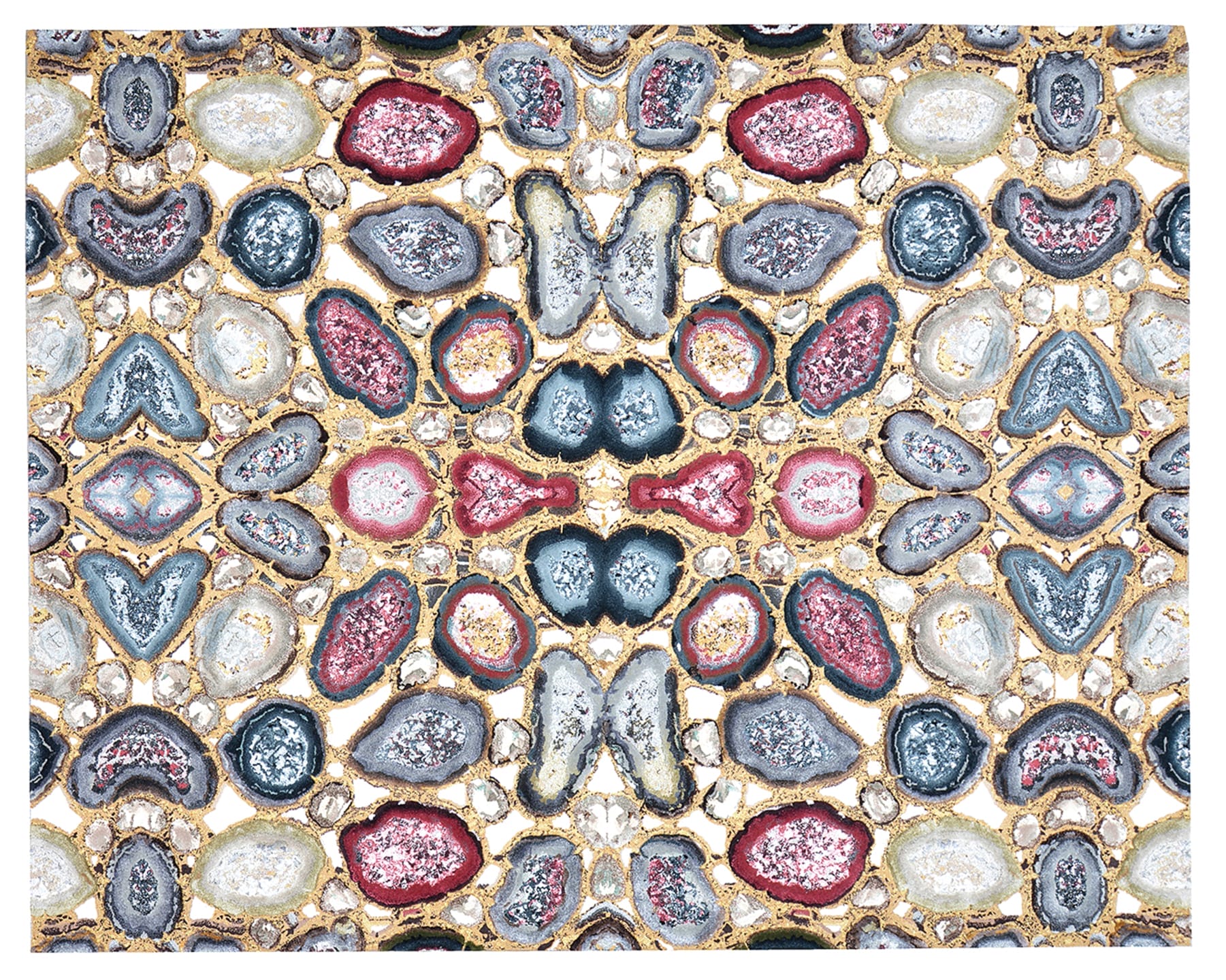 Jeweler Kimberly McDonald collaborated with rugmaker Marc Phillips to create a mesmerizing new line of rugs based on her favorite natural materials, including opal, agate, and geode. This wool-and-silk version is inspired by her signature geode cuff and sold by custom order. marcphillipsrugs.comCourtesy of Marc Phillips