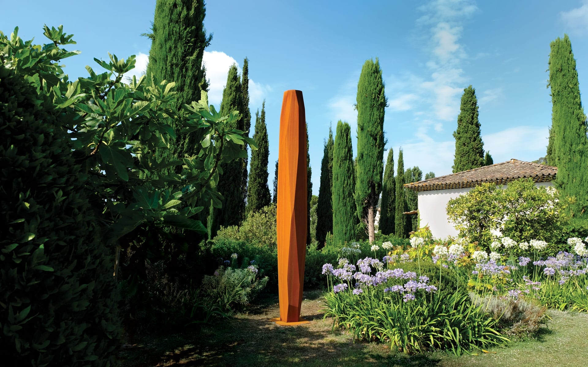 Known for his monoliths that have appeared on the grounds of the Villa René Lalique in Alsace, France, and the Donum Estate, a vineyard meets sculpture park in Sonoma, California, artist Arik Levy is now bringing his installations closer to home. Sited on the property he shares with his wife and fellow artist, Zoé Ouvrier, in Saint-Paul-de-Vence, France, are works from Levy’s current “RockFormation” series, as well as other forms from his oeuvre.