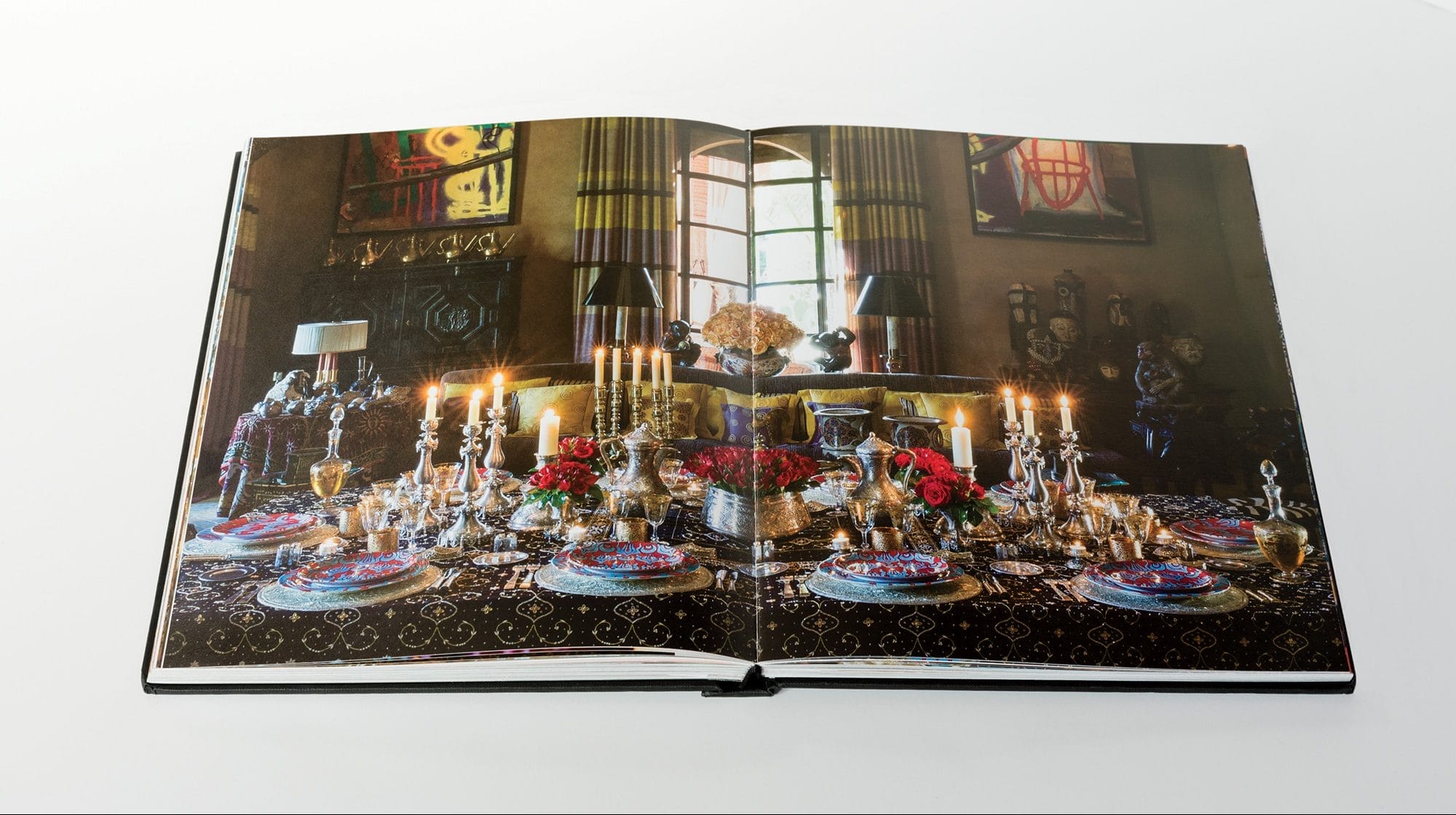 Countless large photographs by Guillaume de Laubier show that a beautiful table setting doesn’t end with the plates, glasses, and cutlery. It is so much more. Nicoli approaches a table setting as an art installation—an assemblage of carefully selected decorative objects. His incredibly whimsical arrangements aren’t part of the dinner party—they are the dinner party. Nicoli describes his creative process by saying, “I array [the objects] as I see fit, like the props on a film set, ballet stage, or painting—indeed, a real still life—so that they underpin the installation and create the right atmosphere.” He also says his settings are based “on my own eclectic view of multiple spheres—precious metalwork, ceramics, indigenous art, art brut, glass, and fabrics.” His collection of quirky and luxurious objects comes from Nicoli’s world travels—to Morocco, South Africa, Iran, China, Italy, and beyond.