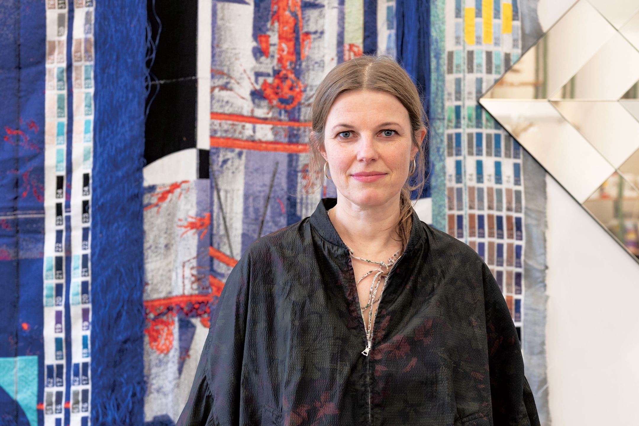 Whether displayed in a white-cube gallery or a bustling city park, her work elicits a wide range of interpretations. To some, the playful patterns and rounded edges appear as homages to European art and design movements, such as Bauhaus and Concrete Art. For others, the towering mirror sculptures dressed in photographic prints and arranged in catchy tile configurations are a comment on the rapid speed of our visual culture.