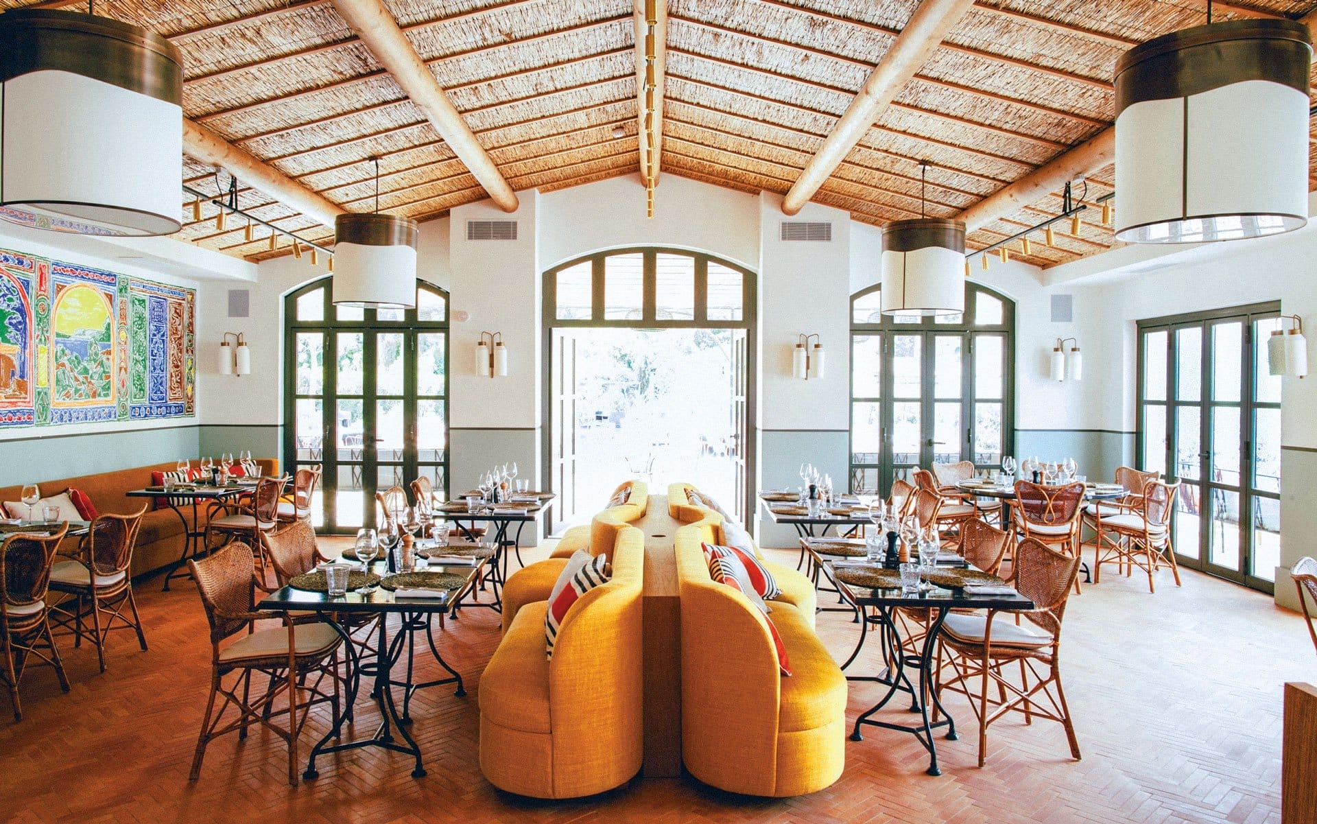 At the Hotel Lou Pinet, a 34-room property that had been in the same family for generations, Zana aimed to redefine Provençal style by mixing terra-cotta-tiled floors and period pieces with his own designs. He collected mismatched textiles for throw pillows from London designer Jennifer Shorto, then paired the soft goods with striking art that nodded to a similar palette. “For me, it is the most luxurious thing when you put items together that don’t match,” he says, “and in the end, it is okay.”
