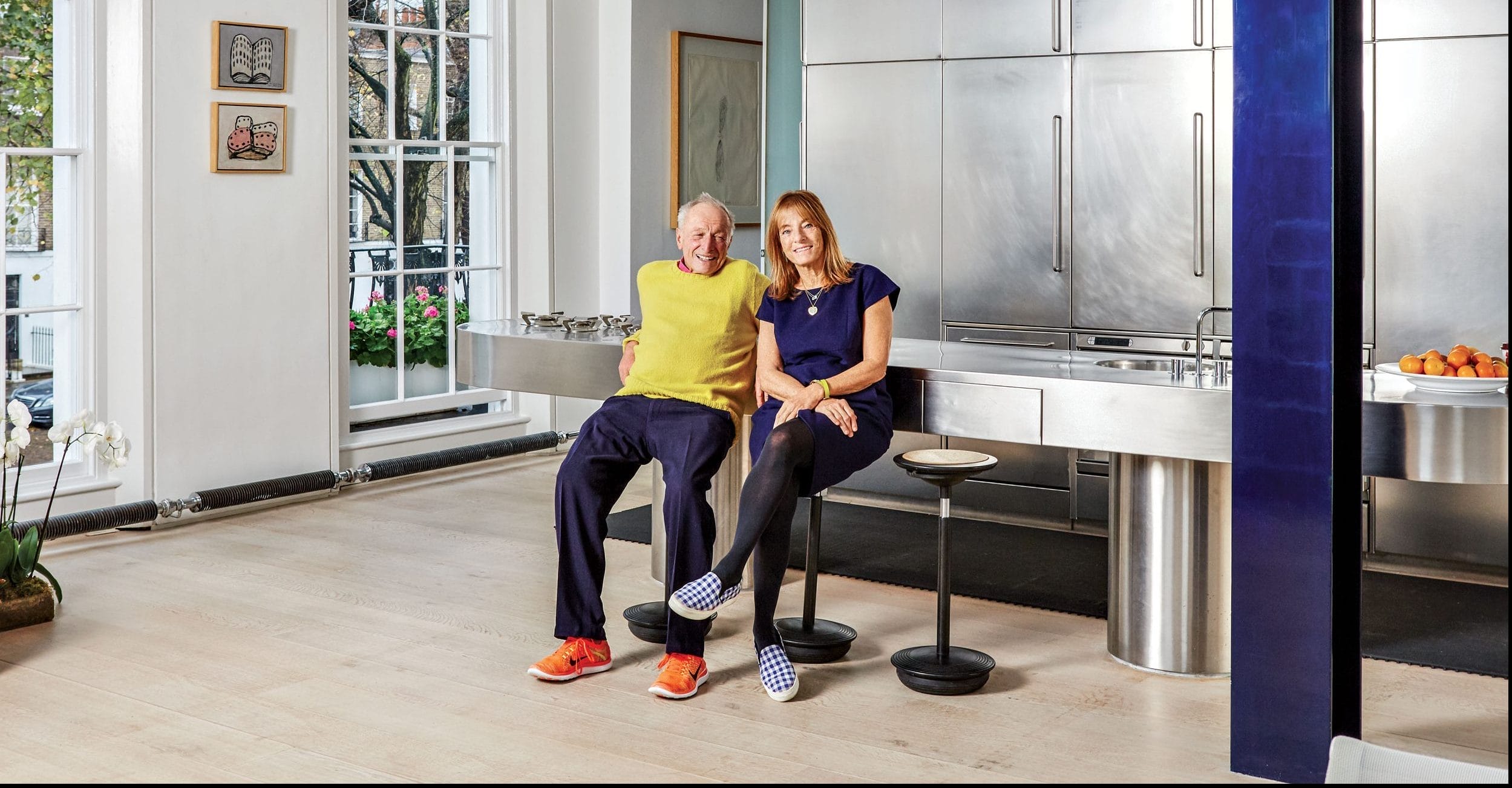 Ruth Rogers with her husband, Pritzker Prize–winning architect Richard Rogers, who designed their kitchen in 1984.