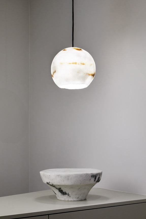 Roxane Lahidji creates one-of-a-kind furniture and objects in an innovative material she developed from sea salt in pursuit of environmentally friendly production processes. In her first solo exhibition, the French-born designer showcases recent creations such as Shirokuro, a salt-and-wood low table resembling a snow-covered tree stump. It joins an impressive series of salt wall pieces reminiscent of the seabed as well as cocktail tables and spherical lamps that have shaped the identity of her Belgium-based studio, Marbled Salts, while showcasing how her experimental pieces continue to evolve their form, size, and color in intriguing new ways.