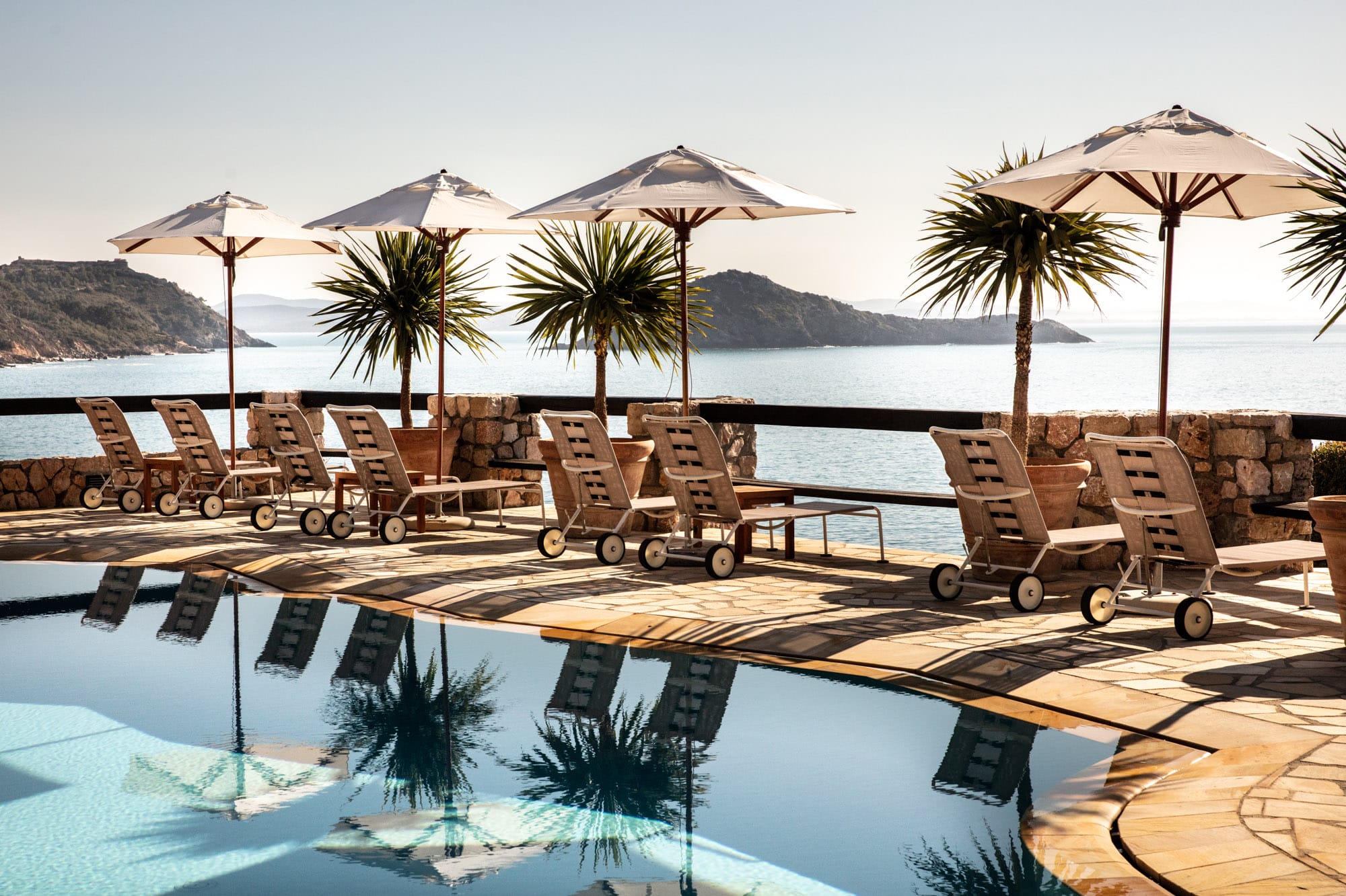 Tuscany isn’t only rolling countryside and historic hilltop villages. The region also boasts an impressive yet still under-the-radar coastline, and close to its border with Lazio lies the picturesque Monte Argentario. This peninsula, and the town of Porto Ercole that tucks into its bay, is home to La Roqqa—a luxury boutique hotel and beach club opened in 2023 that provides a contemporary counterpoint to the typical rural medieval properties. The interiors showcase the best of modern and contemporary Italian design through the use of midcentury furniture icons and bold splashes of color across the interiors by Palomba Serafini Associati. Meanwhile, its sister location Isolotto Beach Club offers “barefoot chic” under scalloped parasols beside a sandy stretch of coastline.