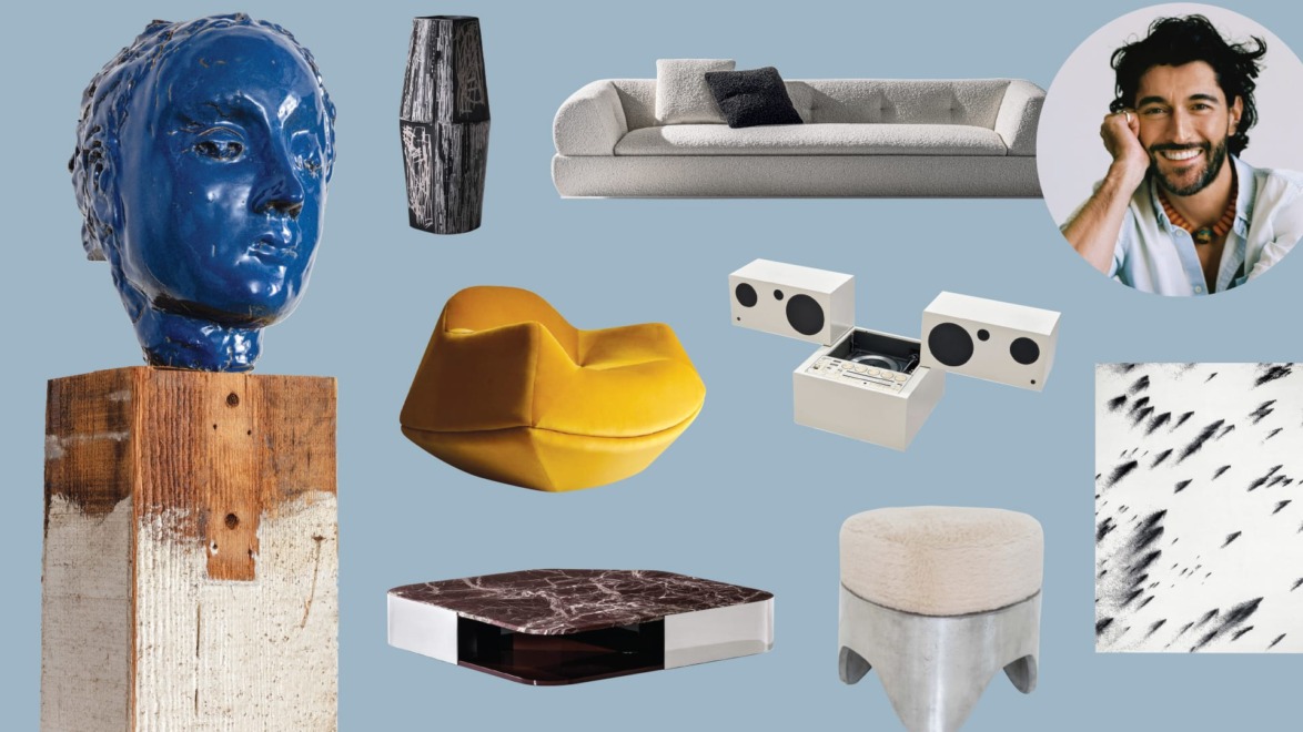 “There’s a sensuality that comes across in the room,” he says of the space, which is anchored by a sofa he designed for a new collection with Minotti. Perfect for enjoying an apertivo, the living room sparks a dialogue between contemporary and vintage, echoing the aesthetic tension between the sculpture’s polished and Brutalist characteristics.
