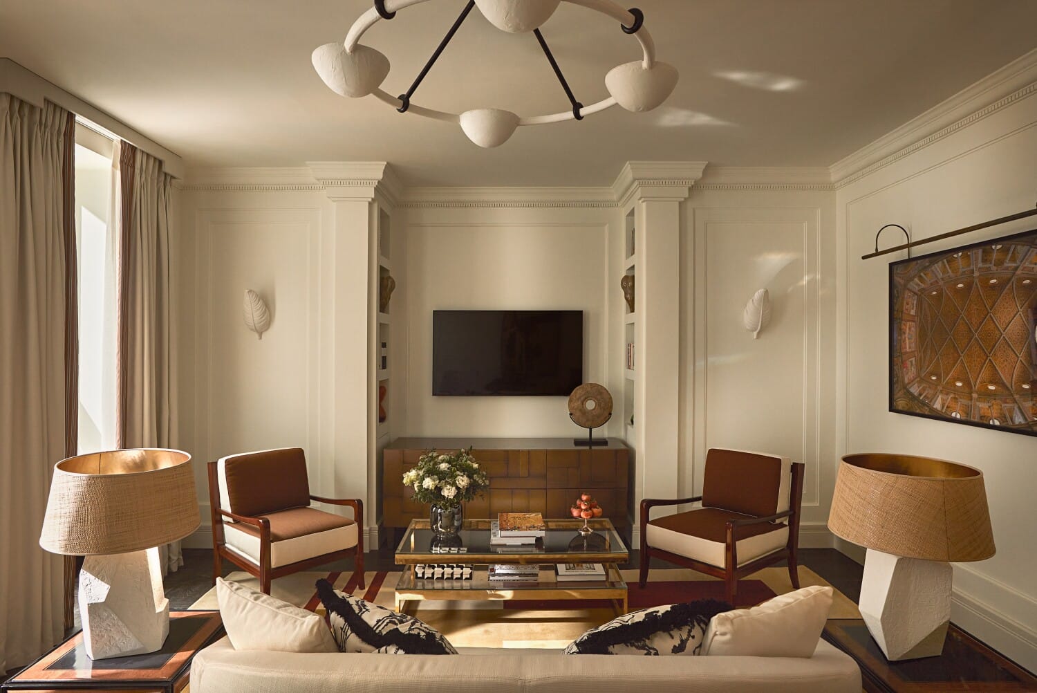 The results of their combined efforts are elegant spaces with a residential feel that provide a cinematic respite from the bustling city beyond.