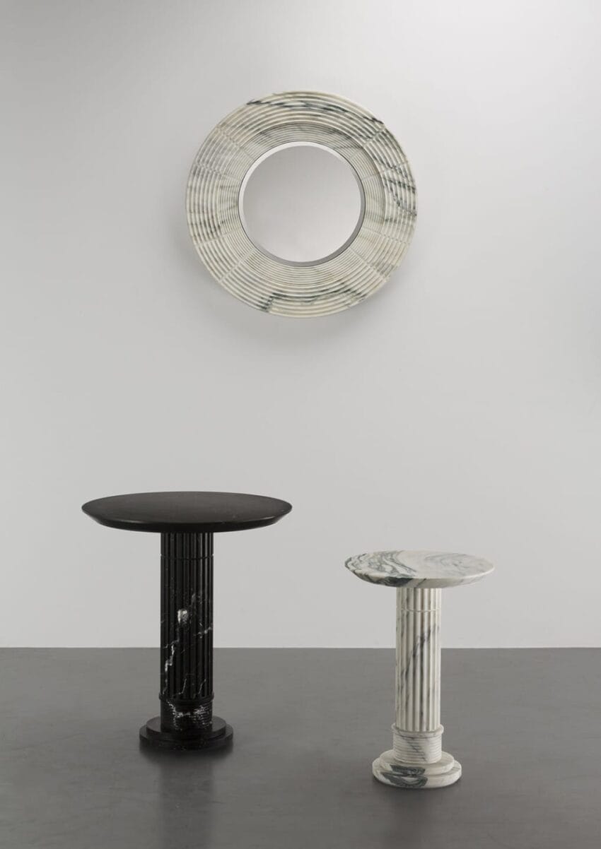 Called “Architectures,” the show features a collection of functional sculptures—items you might see in a line of home goods, like gueridons, tables, lamps, consoles, and mirrors—that were inspired by Lagerfeld’s love of Greek antiquity.