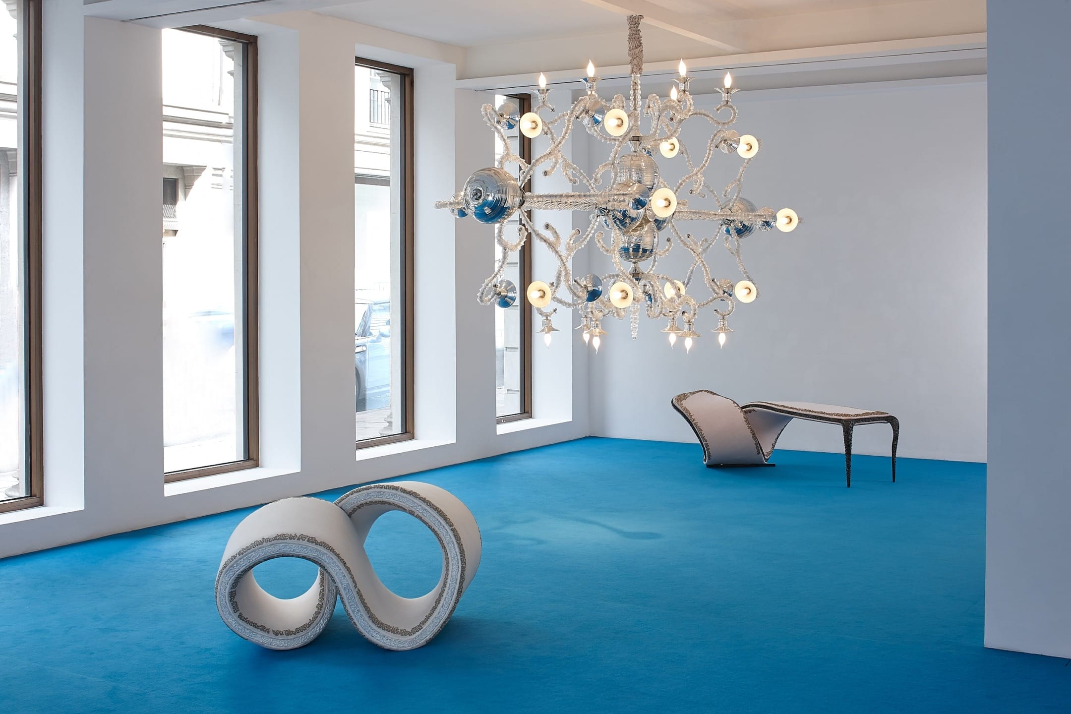 Large chandeliers: There were many great examples, from Nacho Carbonell at Carpenters Workshop to a divine undulating sculptured bronze and onyx cloud chandelier by Markus Haase at Todd Merrill Studio.