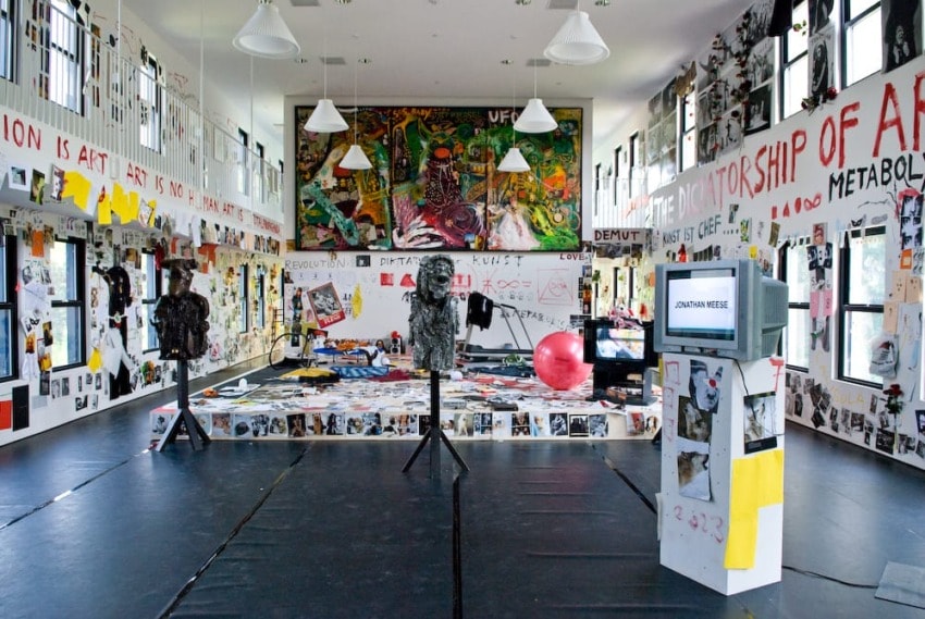 “For me, it was the rare occasion that one of the benefit installations was indoors with Jonathan Meese’s Marlene Dietrich in Dr. No’s Ludovico-Clinic (Dr. Baby’s Erzland) in 2008. Meese was given free rein to incorporate the center’s eclectic collection. He transformed the normally pure and pristine space into a fantastic assemblage of cult, kitsch and historical relics.”