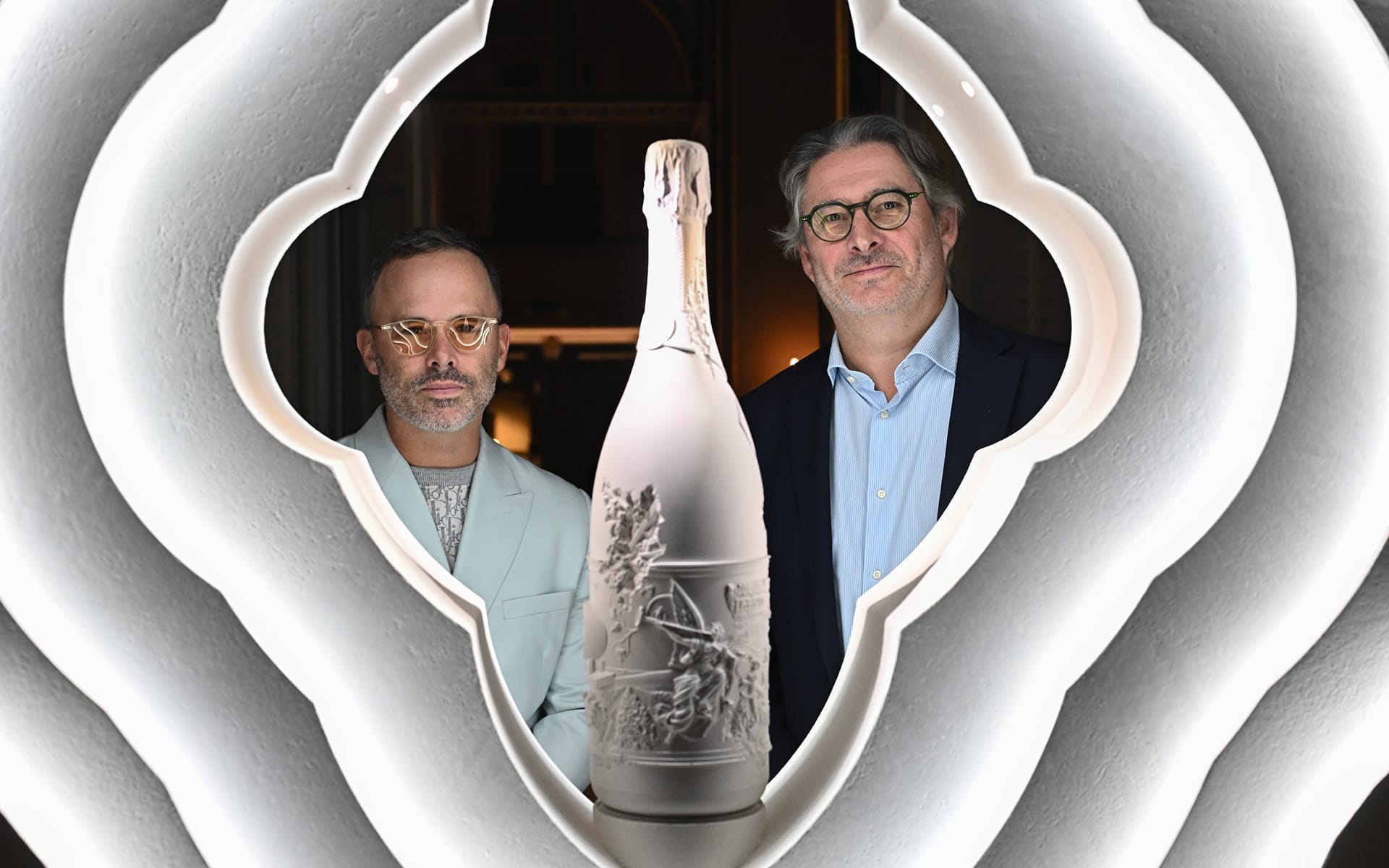 The co-host of the evening, Daniel Arsham, created 85 sculptural shells to go along with limited-edition bottles of the cuvée. The pièce de résistance—a 9.8-ft.-long, 4.3-ft.-high wall-mounted relief—was unveiled in the manicured gardens outside the former residence that once housed Napoleon Bonaparte’s inner circle. Crafted from cast resin (a nod to Champagne’s characteristically chalky soil) with images of vineyards, Château de Saran (the Moët family’s hunting lodge-turned-private residence), and Greek deity Pheme, goddess of fame, the piece will be placed on public display in Moët & Chandon’s cellars.