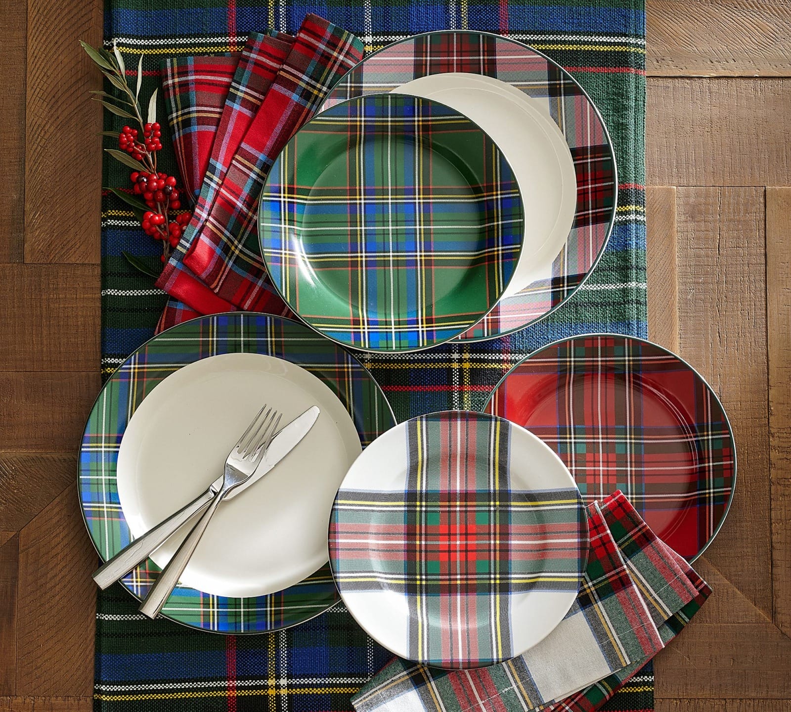 Set your table with this stunning collection of Stewart Plaid dinnerware by Pottery Barn. Layer it with holiday pieces for extra merriness or use it all winter long.