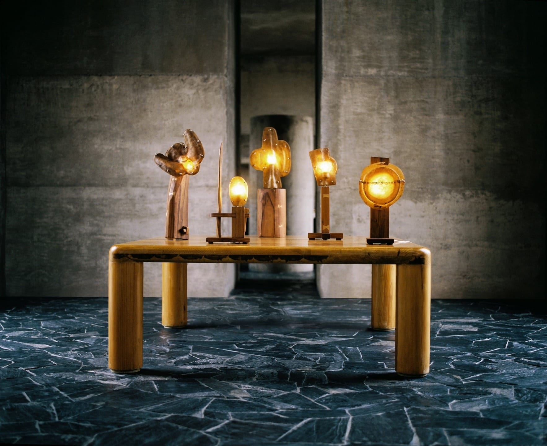 Lately, Pol Agustí has been repurposing discarded fiberglass molds—once used to restore religious statuary and build film props—into poetic lamps that riff on faith and transformation. Presented by AGO Projects, the show gathers over a dozen works the Mexico City artist crafted from found forms and regional woods like tzalam and parota. In one, a pair of angelic hands reemerges as a suspended gesture; others evoke scallop shells, fertility goddesses, or ritual tools. Through exposed joinery, raw textures, and references to Catholic and pagan traditions, Agustí builds a symbolic vocabulary where light itself becomes a type of devotional offering.