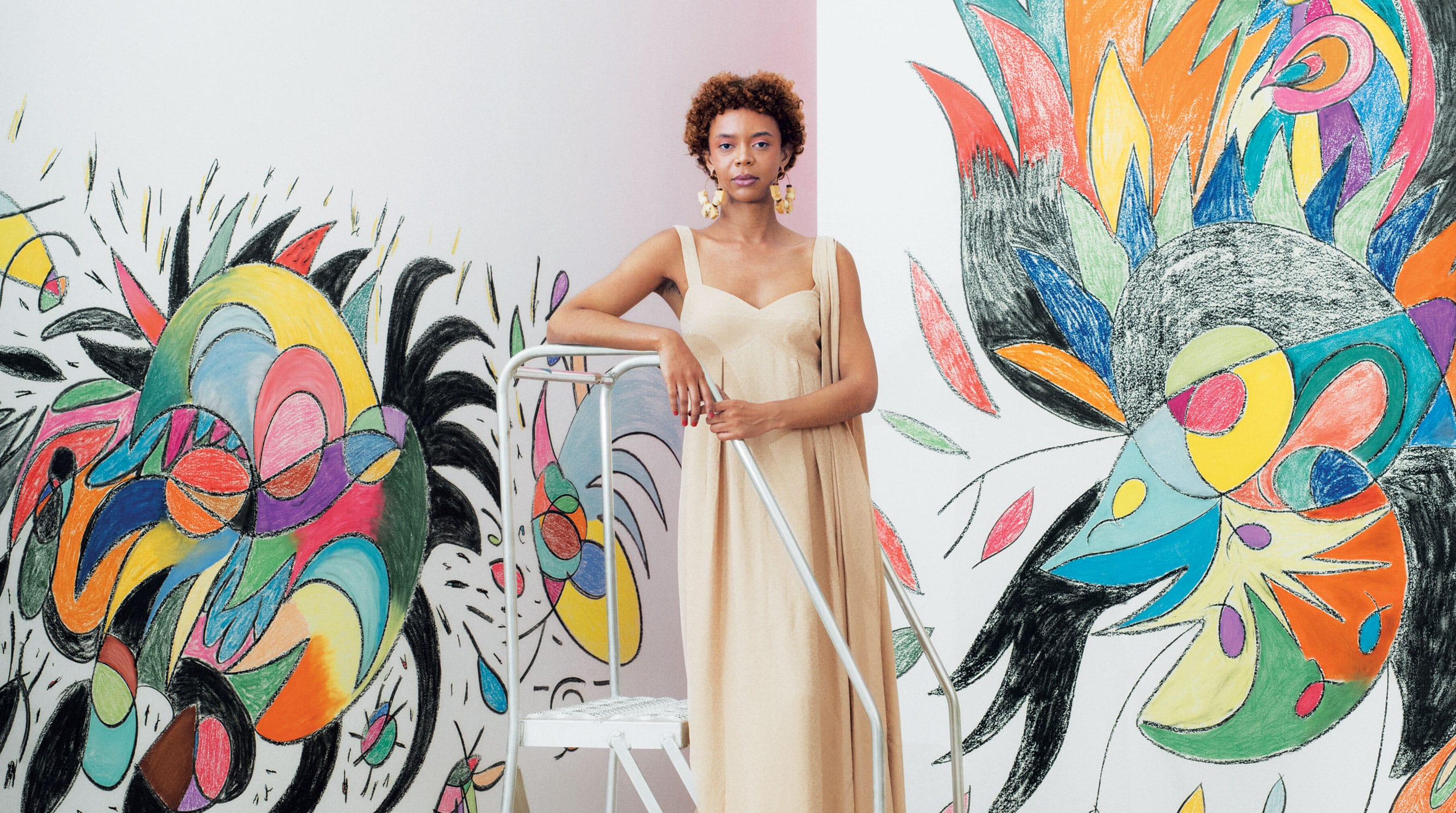 Drawing has always been central to Tadáskía’s creative output. As a child, she wrote on the walls and doors of her parents’ home. Then, in 2024, she found herself illustrating the walls of New York’s Museum of Modern Art with vibrant, kaleidoscopic birds and colorful swirls that solidified her place as an artist on the rise.