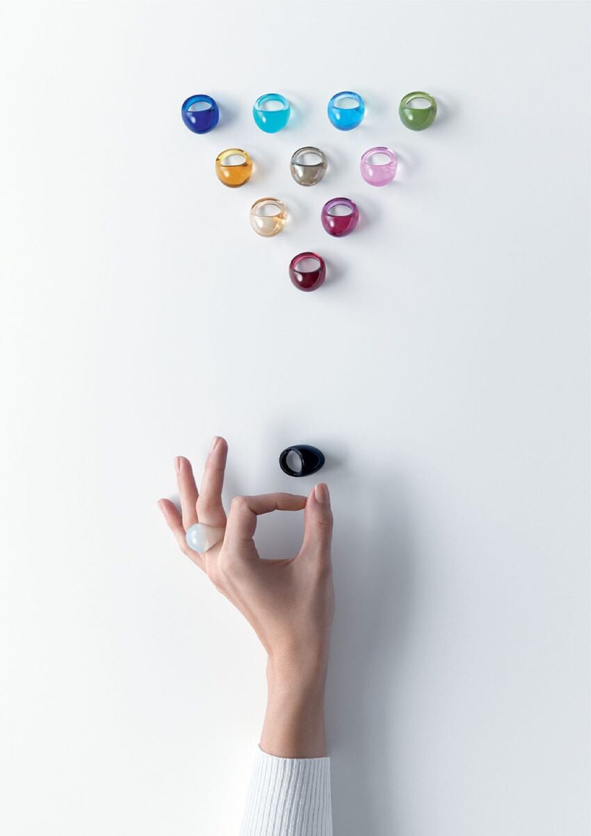 Blown Tetrix rings by Agustina Ros. Courtesy of Vitraria Gallery