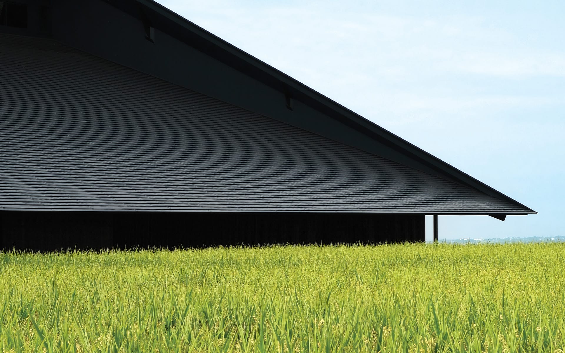 Since such an artfully composed beverage deserves an equally compelling brewing facility, Geoffroy looked to legendary Japanese architect Kengo Kuma. Referencing the traditional architecture of the region, Kuma devised a structure with a low-slung metal roof that dips almost to the ground and floor-to-ceiling glass windows that seamlessly connect the space to nature. This, Kuma’s first sake kura, or brewery, acts as a full experiential location, housing the production facility, reception areas, dining, and two guest rooms for visitors all in one place. And Kuma wasn’t the only titan of design involved; Geoffroy also tapped Marc Newson to conceive the bottle, which pays homage to classic sake vessels with its shape and use of calligraphy.