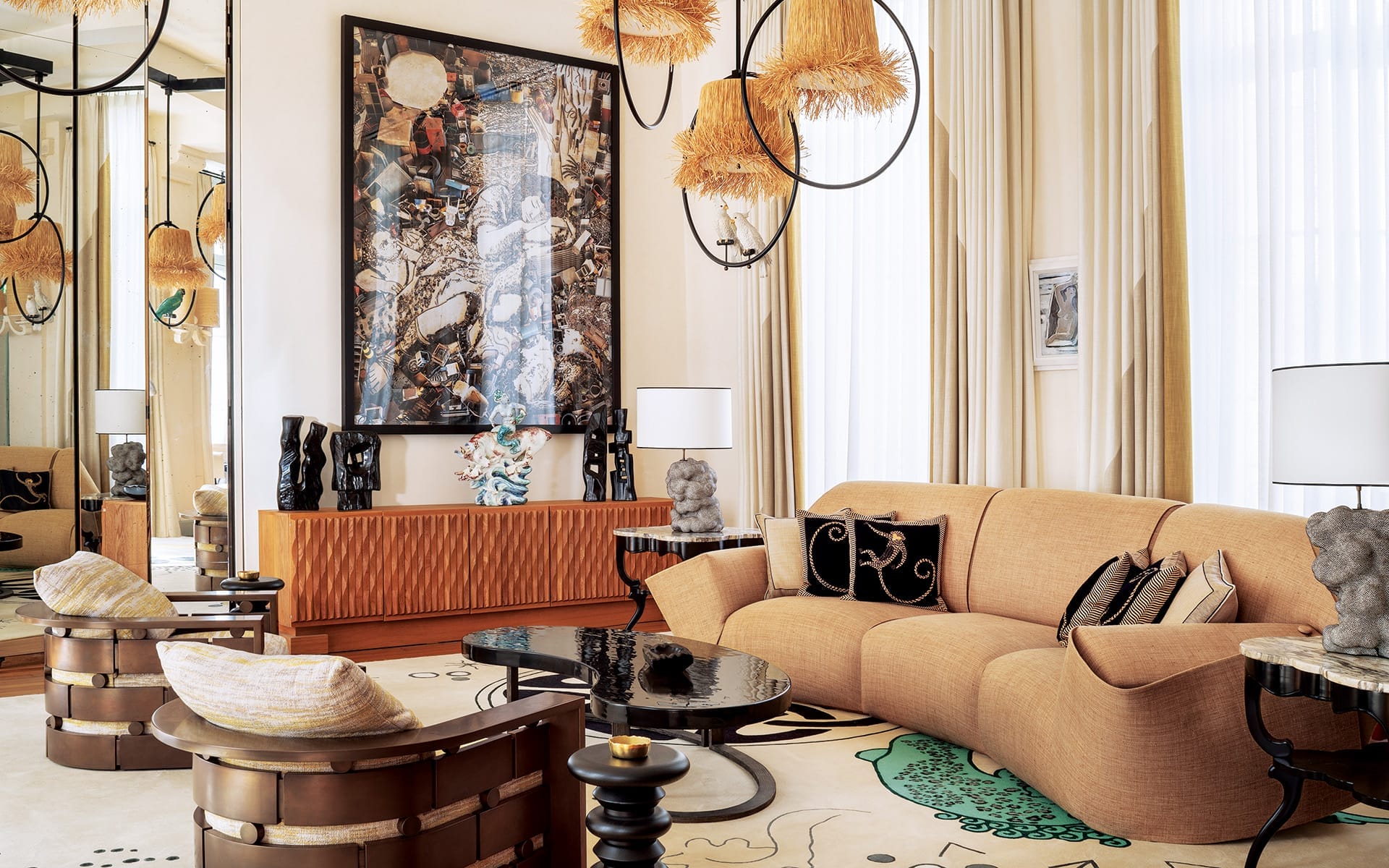 I conceived the sofa with a roll of woven straw on my terrace in Sicily. It’s about defining the curves and the pleats in a shape that is welcoming, soft, and quite spontaneous.
