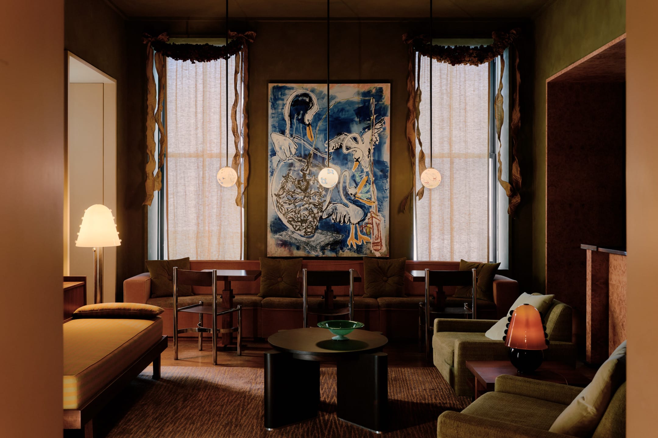 “I wanted to create a narrative based on little detailed symbols, objects, and characters that repetitively appear throughout my paintings,” muses Rheingold, who rendered swans, Japanese florals, rabbits, backyard gardens, and eclipses with painterly finesse. The partnership builds on a creative rapport that formed between In Common With and Ray Harlem, the Frida Escobedo–designed development atop the National Black Theatre that features one of Rheingold’s paintings, as well as the Ali Forney Center. In 2024, the brand donated fixtures for every room in the Center’s residence in Harlem. Rheingold’s limited collection of seven works will be on view at Quarters and available for purchase online. —Ryan Waddoups