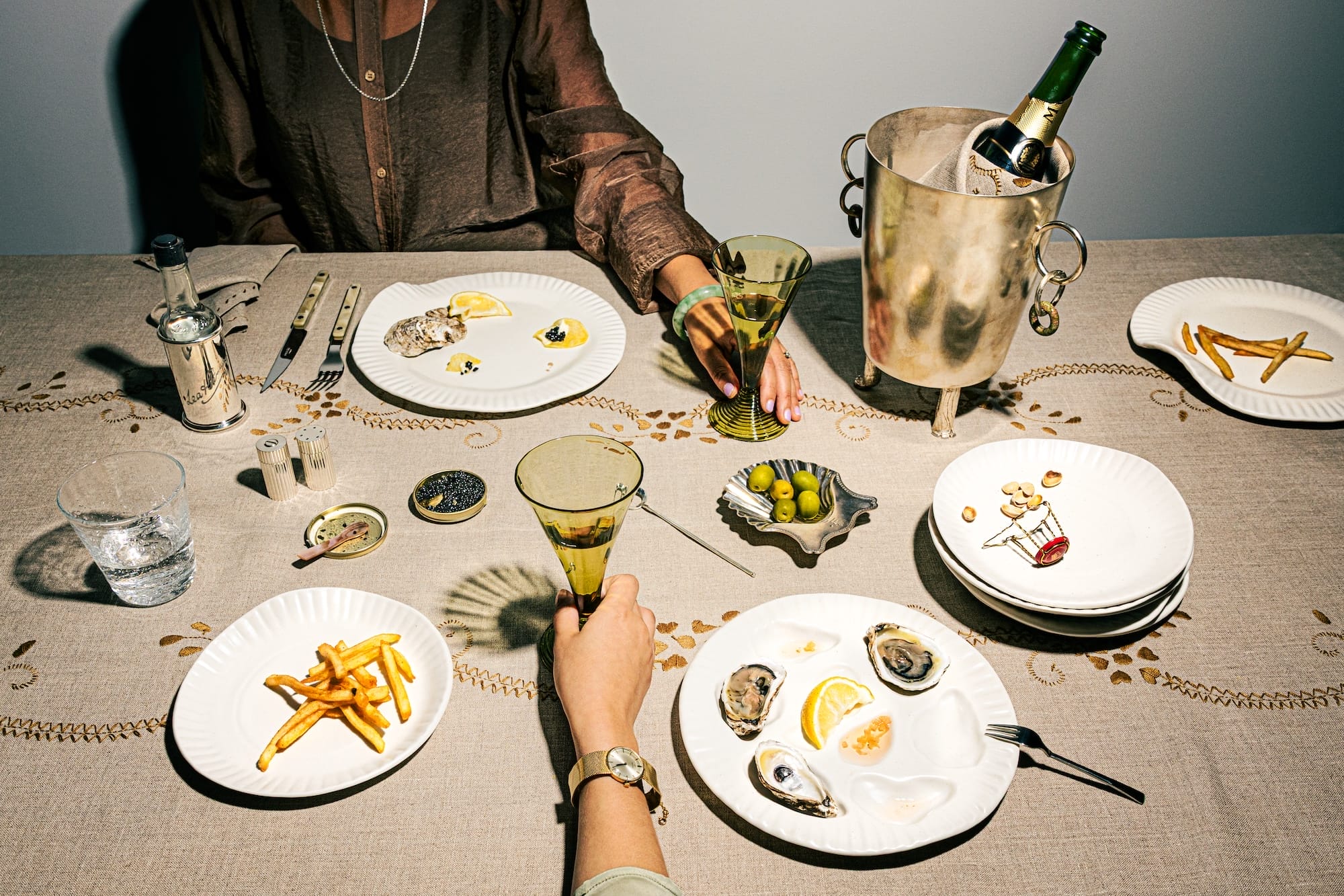 This time, she refined the details. The 2025 edition comes in two subtly scaled sizes—11 and 7.75 inches in diameter—with a deeper indentation that pushes the visual illusion further. Each plate is now handcrafted entirely in her Brooklyn studio, its soft edges and rippling surface revealing the traces of handwork. The reissue also includes the Porcelain Oyster Plate, first introduced in 2014 as part of the Gluttony Collection. “The plate is my tribute to the beautiful chaos of my childhood, of family-style potlucks, lovingly cooked Cantonese dishes served in disposable trays, and eight cousins fighting for a seat at the Lazy Susan,” Sin said in a statement. “I want to honor those sacred, messy meals and transform something humble and temporary into something lasting and cherished.” —Ryan Waddoups