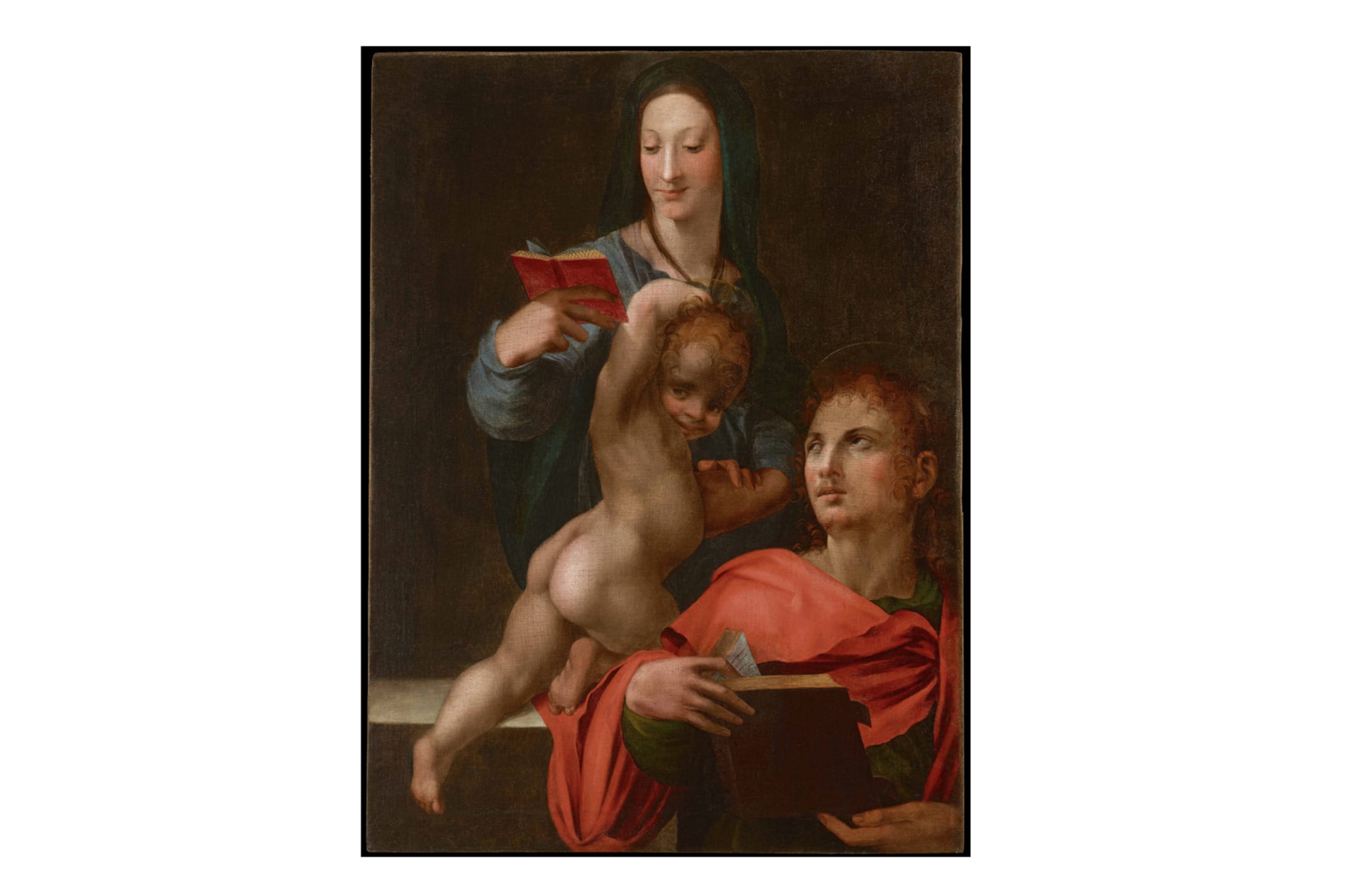 Madonna and Child with Saint John the Evangelist was identified during a conservation treatment that removed a layer of overpaint