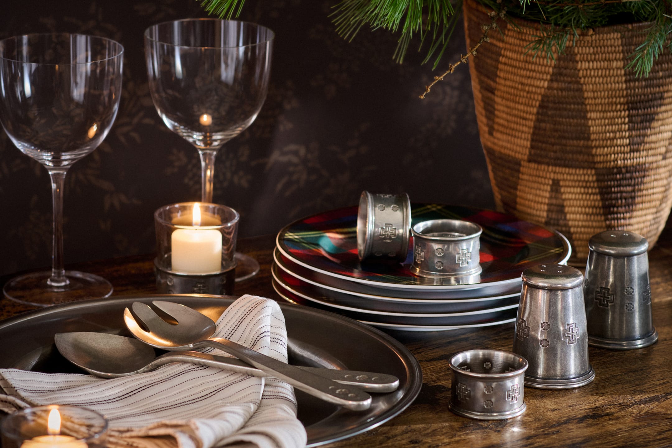 Part of an ongoing Artist in Residence collaboration with Naiomi and Tyler Glasses, Ralph Lauren’s Rena Pewter Salt & Pepper Shakers are inspired by the Navajo weaving traditions that the brother-and-sister duo learned from their late Grandmother.