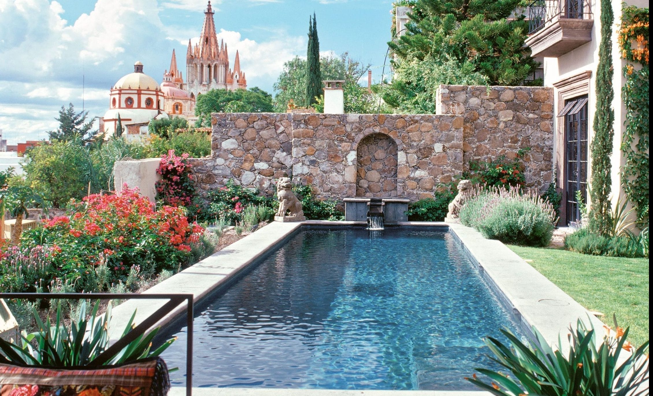 This terrace pool has high-level views of San Miguel de Allende, Mexico.